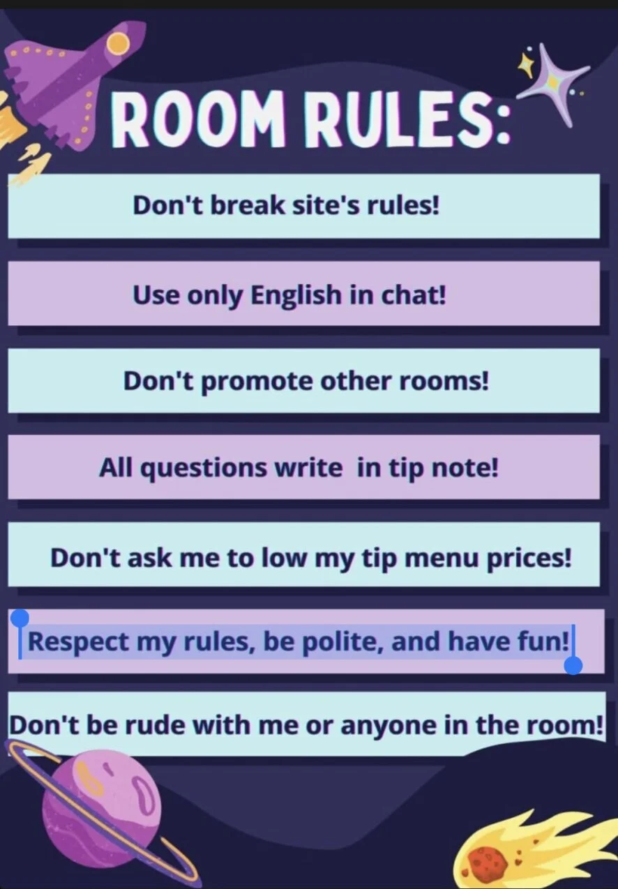 Drkanje, Pušenje, Pušenje, Orgazam, Tittyfuck, Sjedenje na licu, Pseća poza, Twerk, Toples, Striptiz, Dildo ili vibrator, Masturbacija, Show s uljem, Spanking, Analno, Analne igračke, Dvostruka penetracija, Prstenjanje, Kaubojka, Squirt, Erotski ples, Lateks