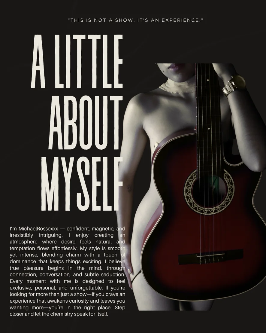 I’m MichaelRossexxx — confident, magnetic, and irresistibly intriguing. I enjoy creating an atmosphere where desire feels natural and temptation flows effortlessly. My style is smooth yet intense, blending charm with a touch of dominance that keeps things exciting. I believe true pleasure begins in the mind, through connection, conversation, and subtle seduction. Every moment with me is designed to feel exclusive, personal, and unforgettable. If you’re looking for more than just a show—if you crave an experience that awakens curiosity and leaves you wanting more—you’re in the right place. Step closer and let the chemistry speak for itself.
